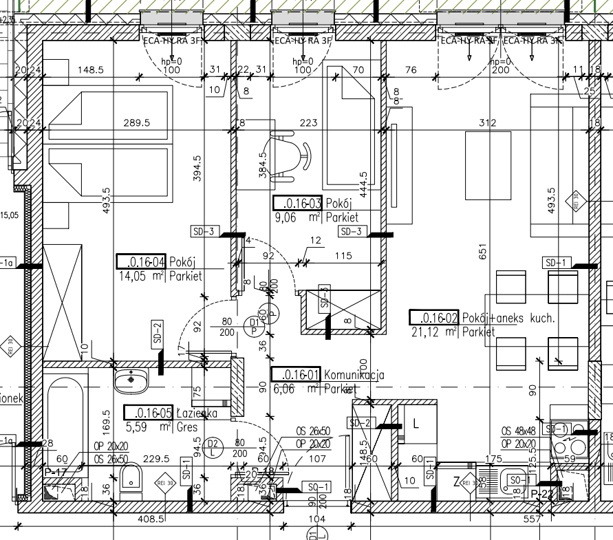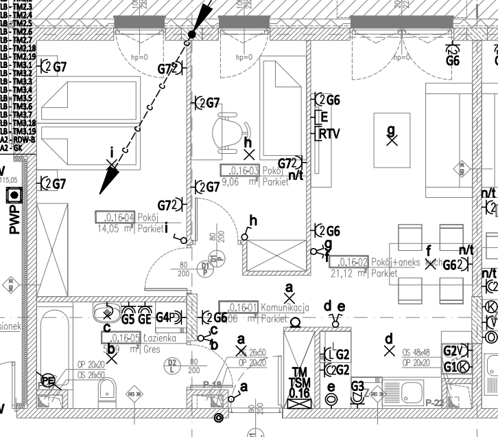 – zmiany w układzie ścianek działowych – zmiana lokalizacji drzwi – zmiany w instalacji elektrycznej – zmiany w instalacji wodno-kanalizacyjnej – zmiany w instalacji grzewczej