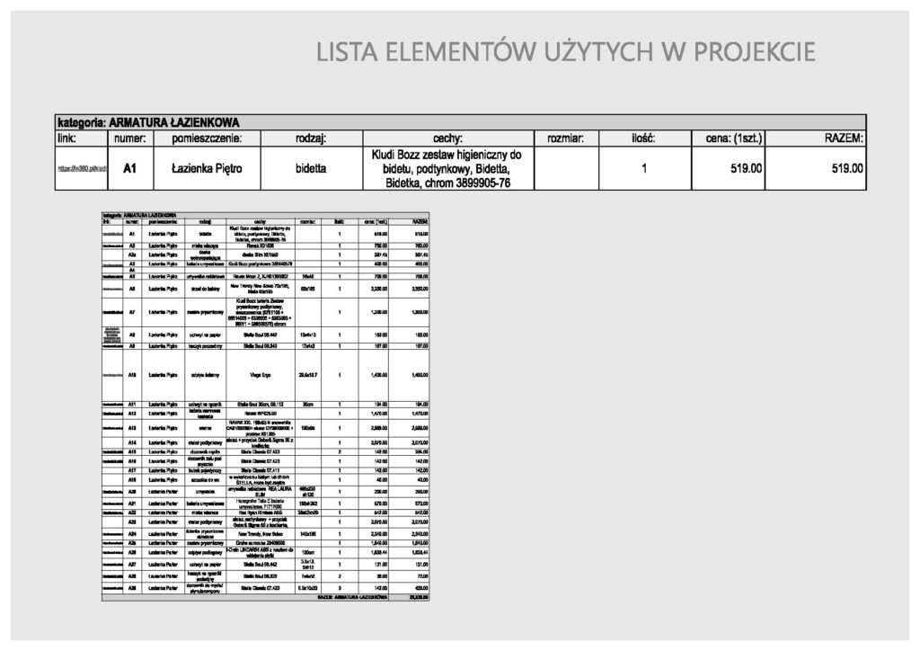 Kosztorys jest także naszą listą zakupową, wraz z obliczeniem ilości potrzebnych materiałów, i wskazówkami co do miejsca zakupu.
